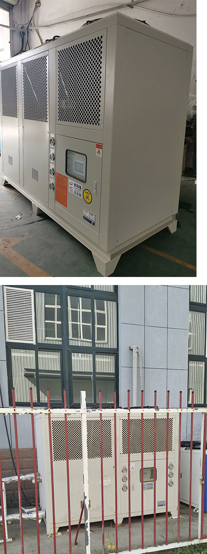 本案例是山西一家高嶺土行業(yè)采購(gòu)的風(fēng)冷一體式冷水機(jī),內(nèi)置水箱水泵,接上電源再接上進(jìn)出水管和生產(chǎn)設(shè)備循環(huán)就可以正常使用了。